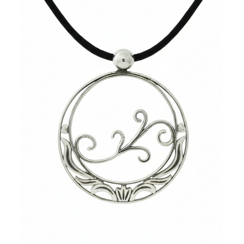 Aros da María-Colgante Grande , calado , con cordon de seda y cierre en plata de ley , con Inspiración de la naturaleza
