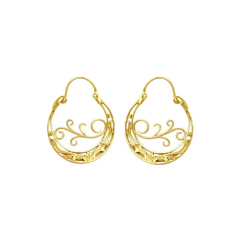 Aros da María-Pendiente Pequeño con cierre media esfera y calado bañado en oro, con Inspiración de la naturaleza