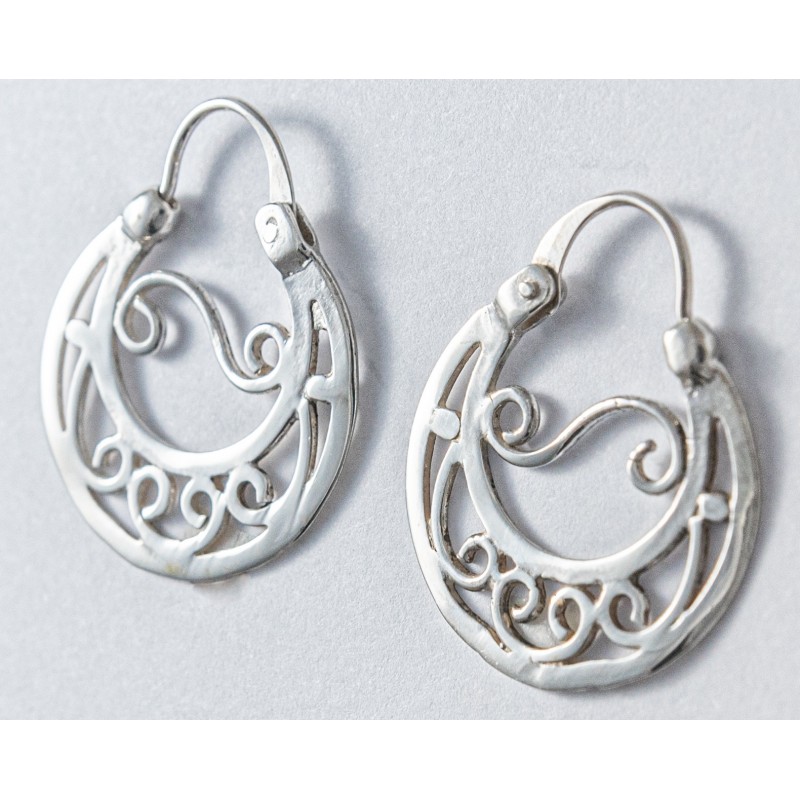 Aros da María-Pendiente pequeño con cierre media esfera y calado en plata de...