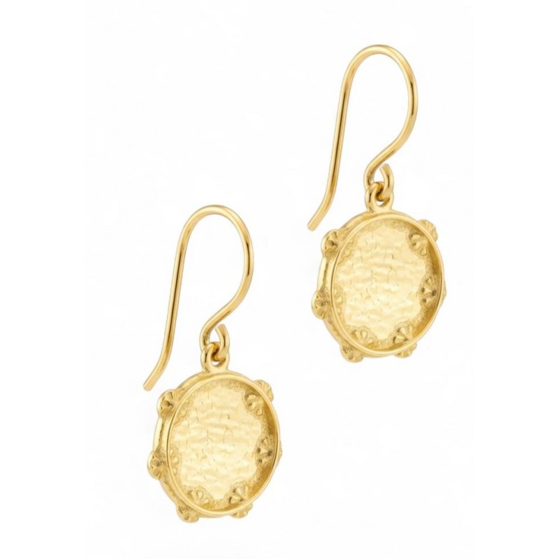| Pendiente grande con gancho movil en plata de ley , bañado en oro de la colección pandeireta de Sonia Ares |