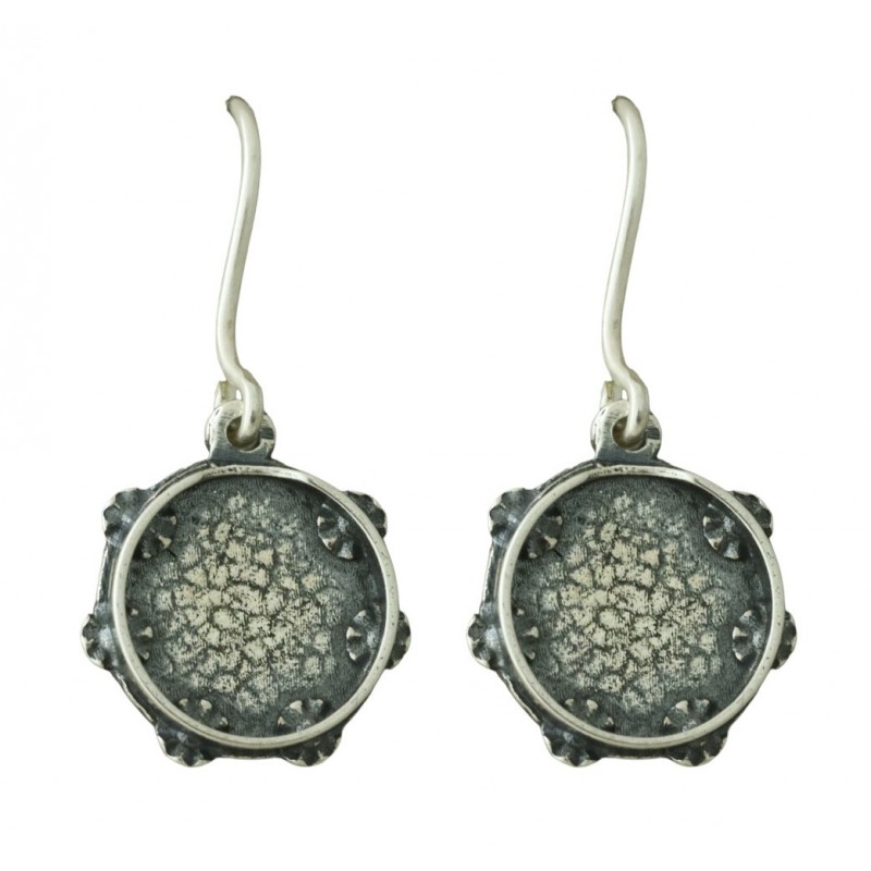 Pendiente pequeño pandeireta de presión en plata envellecida...